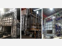 臺車式電阻爐由爐體,爐襯,爐門及爐門升降機構,加熱元件,臺車及臺車傳動機構,密封機構,電氣控制系統(tǒng)組成